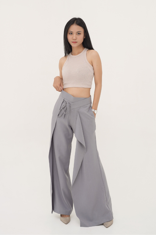 Ashta pants come in 5 colors, and every color is a must have! Comes in asymmetrical waist band, layered details and drapes. Can be worn as a high waist or low waist.