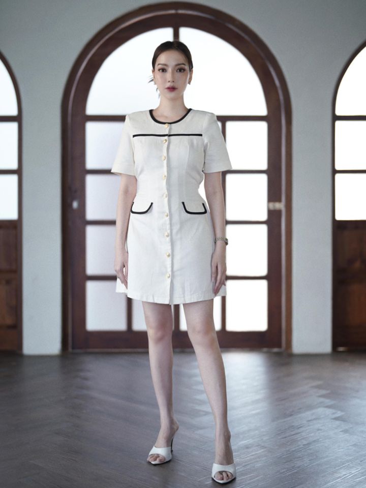 The Blair Dress, the must have timeless classic dress. Made to perfection, from the fabric choice to the cutting. Semi-tweed fabric & hugs the body perfectly. Comes with shoulder pads that can be removed.