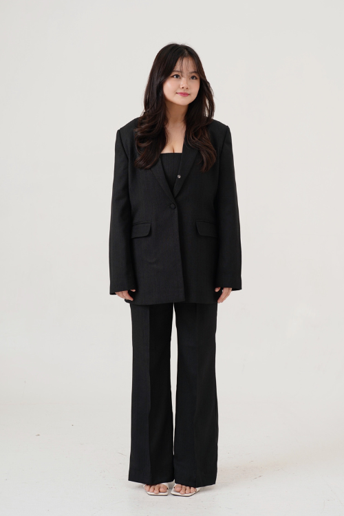 Brooklyn, our bestseller this collection. The perfect set that will leave you breathless. The blazer can be styled in 2 ways, a dress and ofc, a blazer. The bralette is the best, can be adjusted accordingly with the strap. And oh, the pants. Highwaisted, sleek and the cutting is just.. on point.