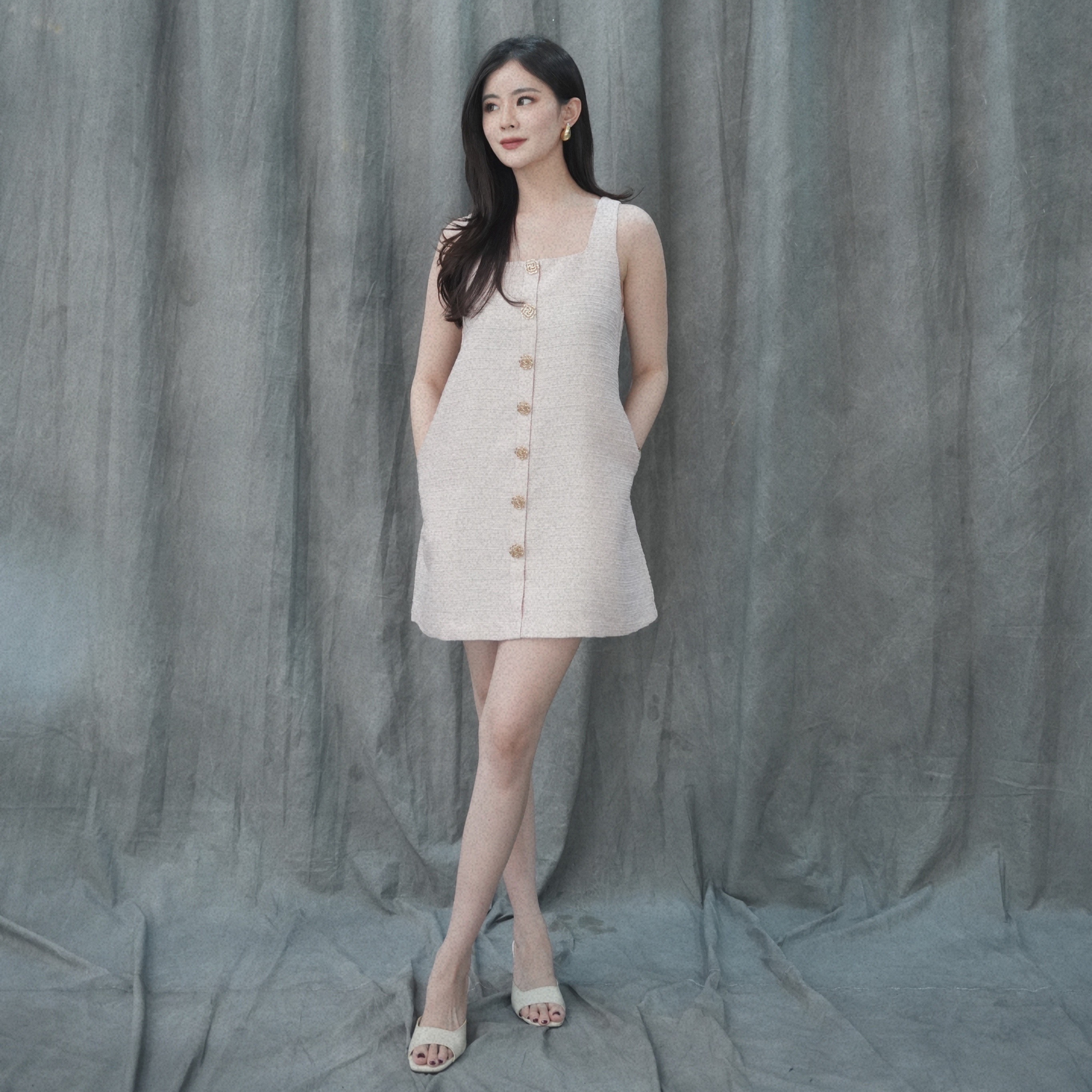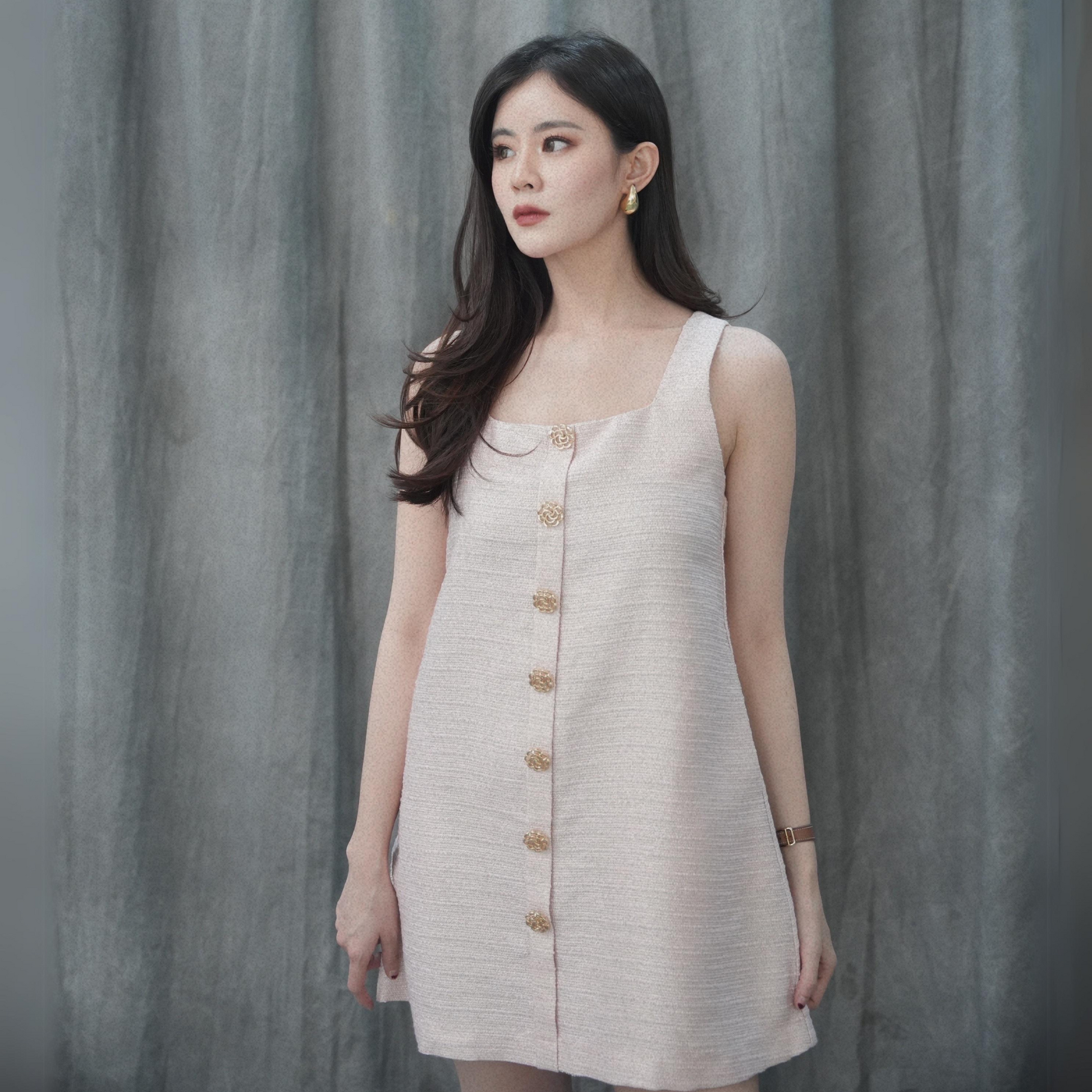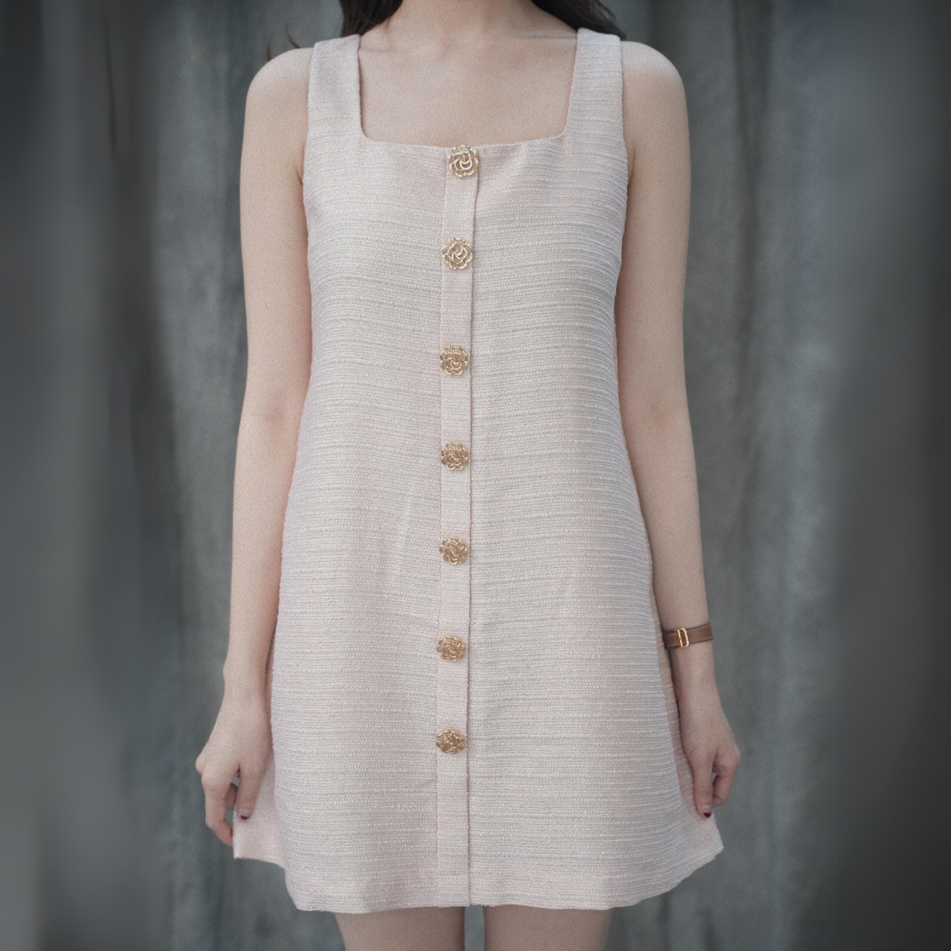 The material is premium tweed (no-itch) with premium gold shimmer, super cute! The button details are Camilia flower gold, super nice and there's no need to doubt the cutting, classy all the way.