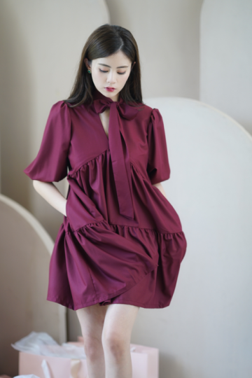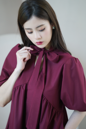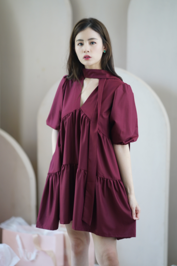 This Carol dress offers you a gorgeous cutting and elegant self-tie ribbon on the upper bodice. You can style the collar into many ways. The drop puffy sleeves make it even more stunning. Fabricated with premium delicate cotton. Exactly what you need when days get warm. Perfect for festive days. Wear it as homewear or for a nice brunch with your BFFs, you decide.