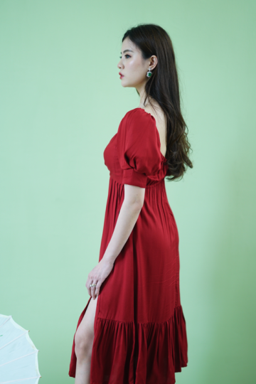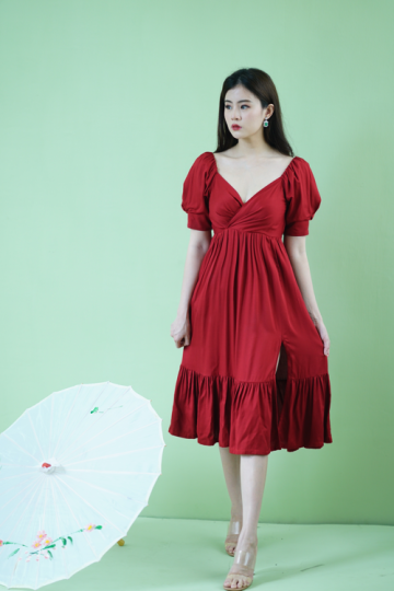This dress has empire wrap details, and the skirt has the beautiful flare to be twirled with. And it has gorgeous puffy sleeves details, pocket and flattering slit too. Fabricated in premium tencel, so it's so airy and delicate, perfect to be worn daily. It has zipper closure at the back.