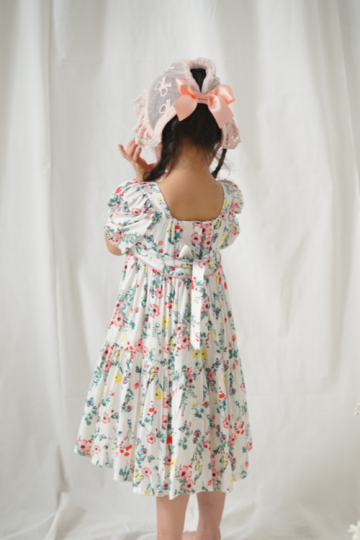 fabricated in premium rayon materials, this gorgeous Darcy dress has the beautiful flowy tcuttings for your lil one to dancing with. it has buttons as the back closure.