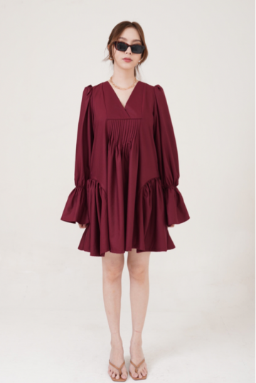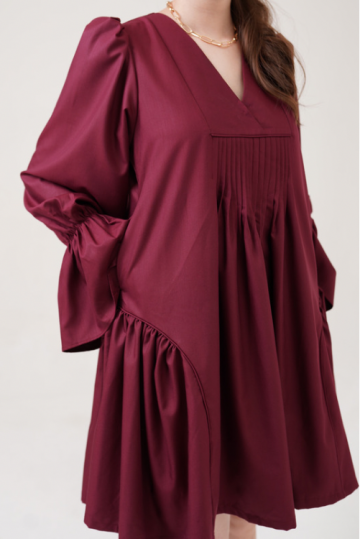 DeLuca is one of our masterpiece this collection. Designed to perfection, the neckline V-wrap will elongate your neck and gives you that instant slimming effect. Comes with side belt, and just the prettiest ruffles!