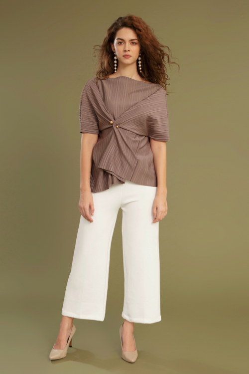 Della top allows you to style or drape according your figure. It comes with styling pin for you to style. it can be worn as casual loose top, and if you want to be in formal occasion you can just pair it with midi skirt or trousers.
