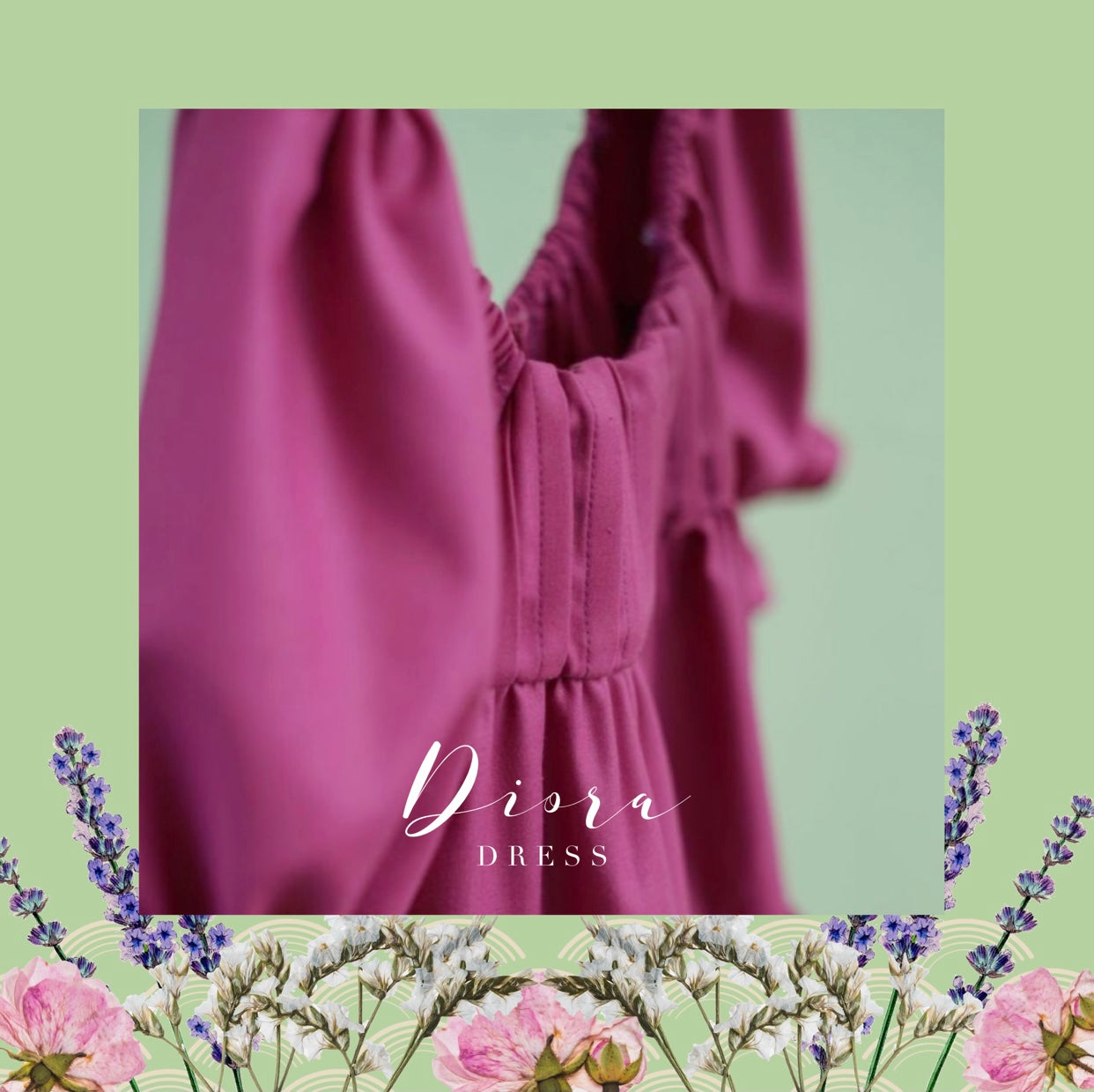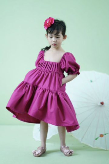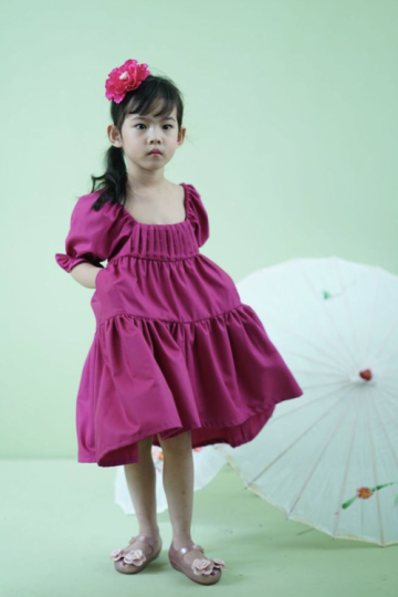 This fuschia dress surely will be a head turner! This dress has a chic square neckline that comes with top stitched pleats details, and the skirt has a beautiful flare to be twirled by your little princess. it has gorgeous puffy sleeves details too. Fabricated in premium cotton, so it's so airy and delicate, perfect to be worn daily. It has zipper closure at the back.