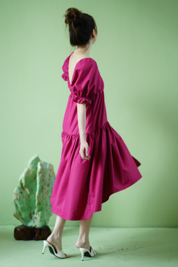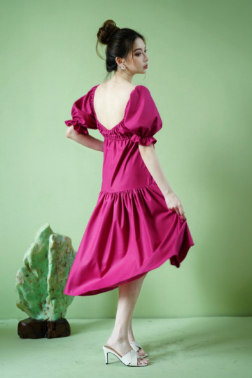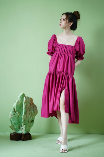 this fuschia dress is surely will be a head turner! This dress has a chic square neckline that comes with top stitched pleats details, and the skirt has a beautiful flare to be twirled with And it has gorgeous puffy sleeves details, flattering slit and pockets too. Fabricated in premium cotton, so it's so airy and delicate, perfect to be worn daily. It has zipper closure at the back.