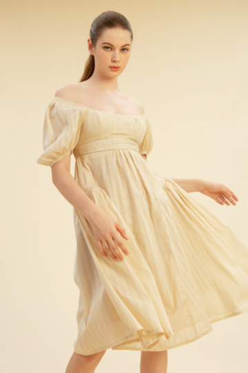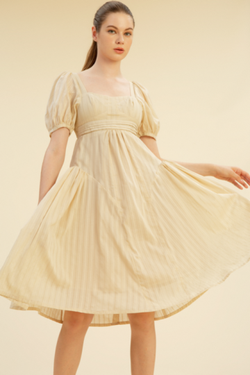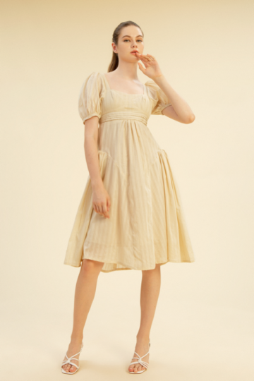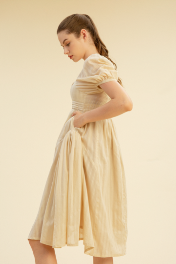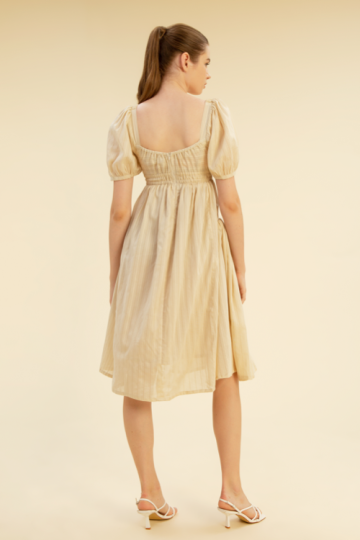 This gorgeous midi dress is inspired by vintage romance, the cuttings are just so lovely! It has rubber at the back to ensure the perfect fit. it also has side pockets and zipper closure at the back. Fabricated in cotton with gorgeous 3D textures.