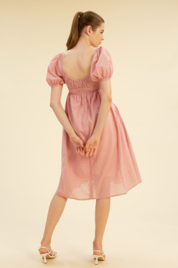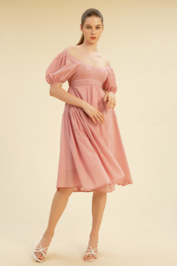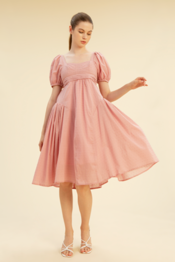 This gorgeous midi dress is inspired by vintage romance, the cuttings are just so lovely! It has rubber at the back to ensure the perfect fit. it also has side pockets and zipper closure at the back. Fabricated in cotton with gorgeous 3D textures.