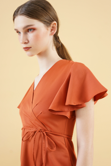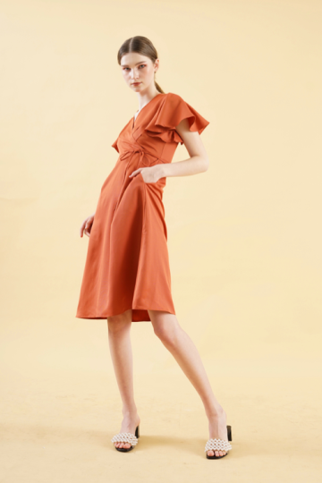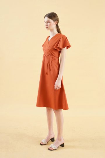 Designed for fluid movement and effortless drape, this vibrant terracotta wrap dress is accented with V neckline and gorgeous flare sleeves. it has pocket and zipper back closure. It finished with a slender adjustable tie. Perfect for daily wear!