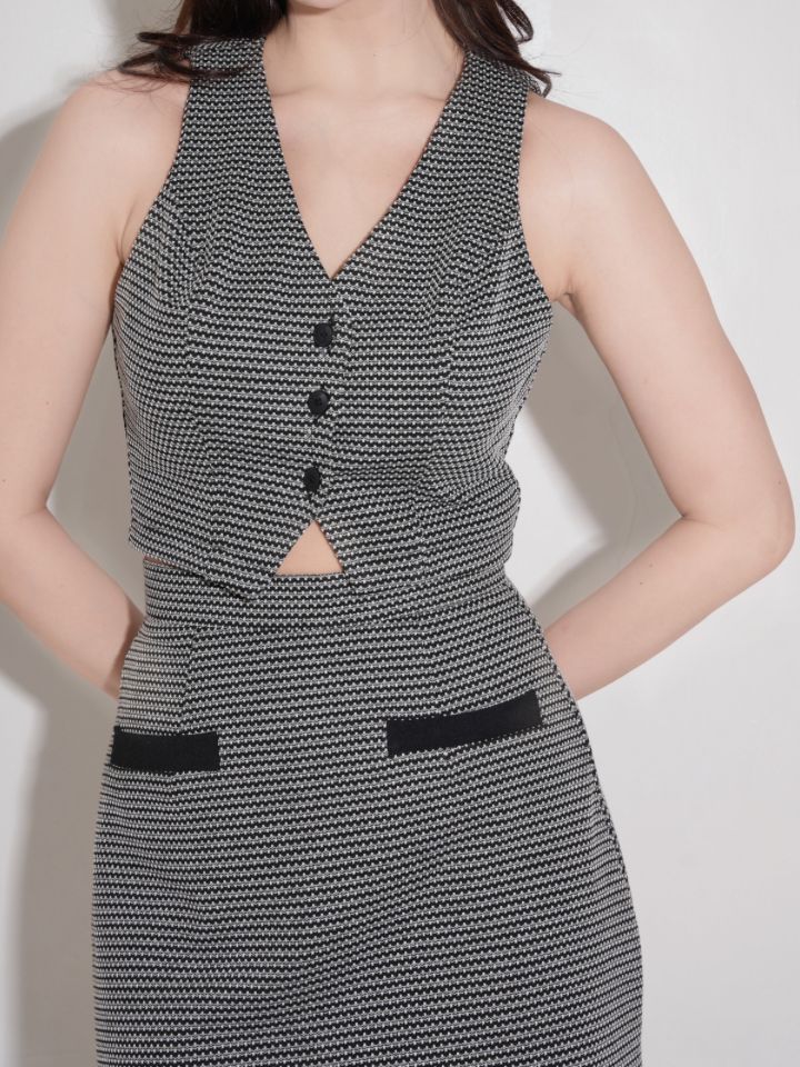 Elysee set is definitely our masterpiece this season! Made with a light but most premium tweed fabric. Soft on the skin and itch-free. Stretchy and the ribbon is adjustable. You don’t want to miss this set!