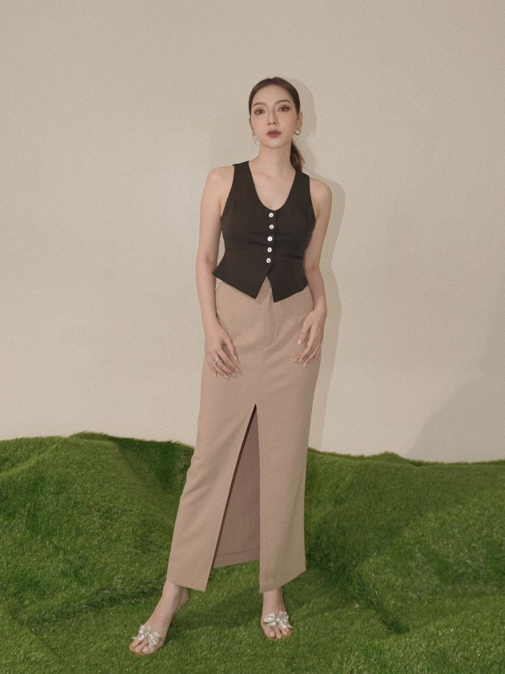 Estelle is definitely a must have high waisted skirt in your wardrobe. The cutting is made to perfectly hug your body and show that sexy curves of yours, but instantly gives you the slimming effect. Comes in 2 colors; black and ash beige.