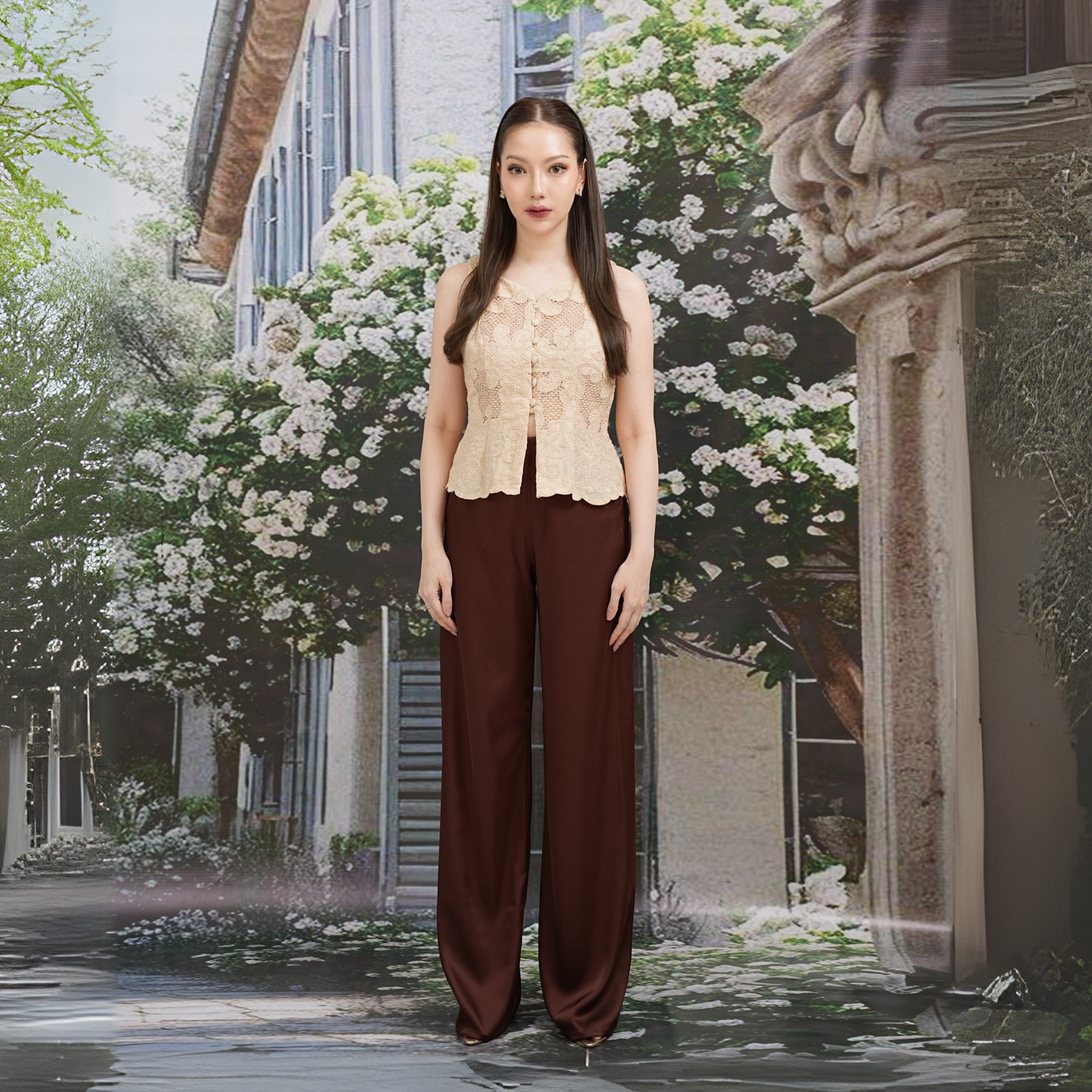 Available in Sakura, Champagne, and Coffe. Where elegance meets everyday ease. Made from ultra-soft, breathable silk, these pants move with you—flowy yet structured, never sheer. The kind of staple you’ll reach for again and again.