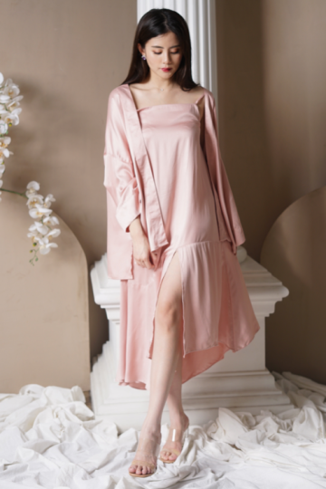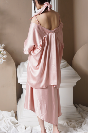 this gorgeous set includes outer, inner dress, belt, and scrunchie, which the cuttings are so lovely and it has rubber at the back to ensure the perfect fit. it has side pockets, flattering slit, and zipper closure at the back. Fabricated in luxurious glossy viscose that is super comfortable to wear anywhere you wish