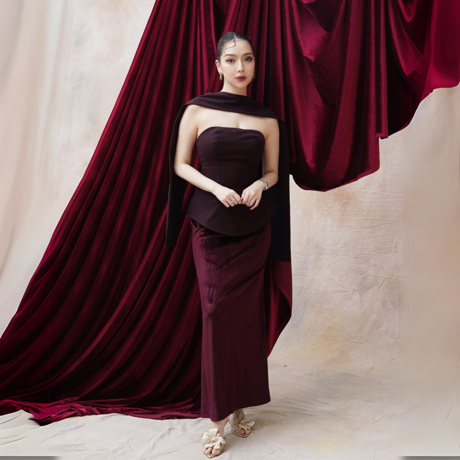 Bringing back the ’90s shawl trend, this top is a must-have! Its effortless elegance and polished aesthetic make it super chic. Crafted from premium materials, the shawl can be styled in various ways, adding versatility to your wardrobe. The flattering cut enhances your silhouette, and the meticulous workmanship makes this piece a personal favorite.
