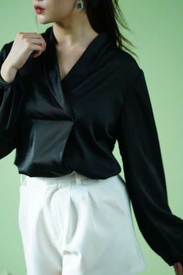Hera top will definitely give you the bossbabe vibe when you wearing it. It features long puffy sleeves annd v fold necklne that is so gorgeous. It's made by a premium satin that is very cooling and it has the most luxurious shine. Must have!
