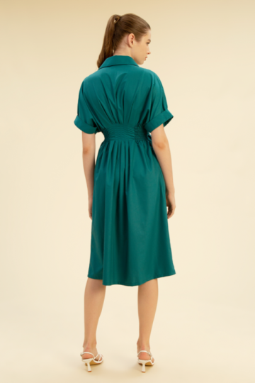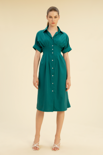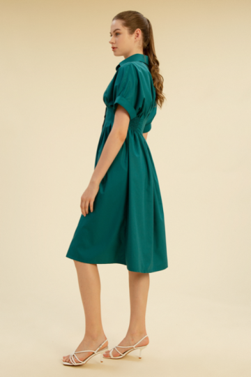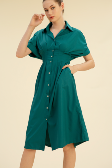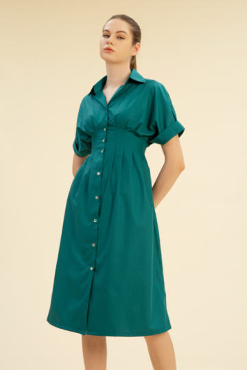 This gorgeous Hisoo dress has such a bossbabe vibe! it has slimming cuttings on the waist and it has rubber smock at the back to hold the waist comfortably. Fabricated in korean premium cotton that is super comfy and delicate to the skin. It has front buttons opening. Must have!