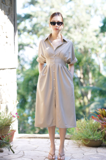 This gorgeous Hisoo dress has such a bossbabe vibe! it has slimming cuttings on the waist and it has rubber smock at the back to hold the waist comfortably. Fabricated in korean premium cotton that is super comfy and delicate to the skin. It has front buttons opening. Must have!