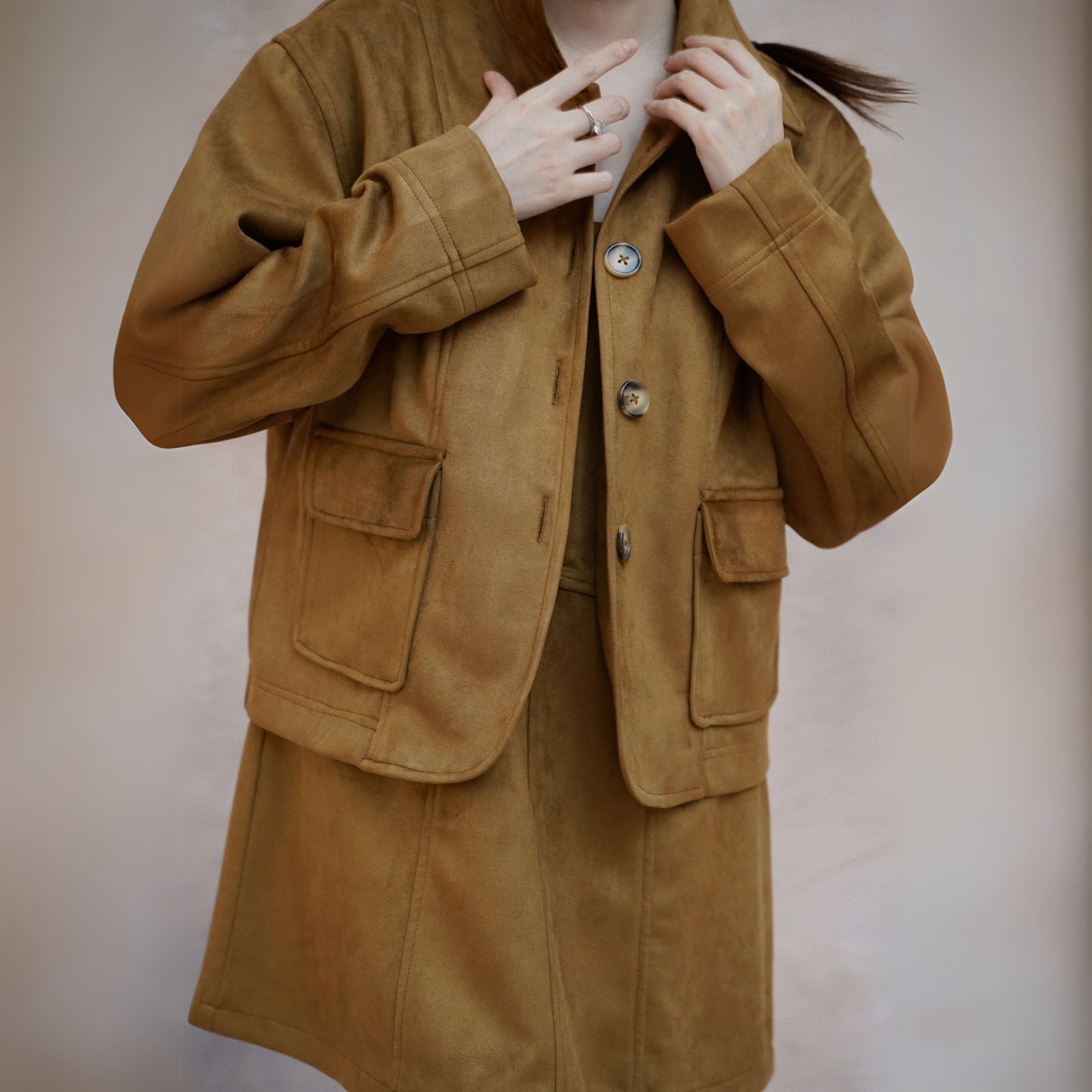 This suede outer is the ultimate holiday staple—trendy, stylish, and versatile! Thoughtfully designed for all seasons, it’s light enough to wear on warm summer days. Pair it with the Possey dress for a stunning combination that’s effortlessly chic.