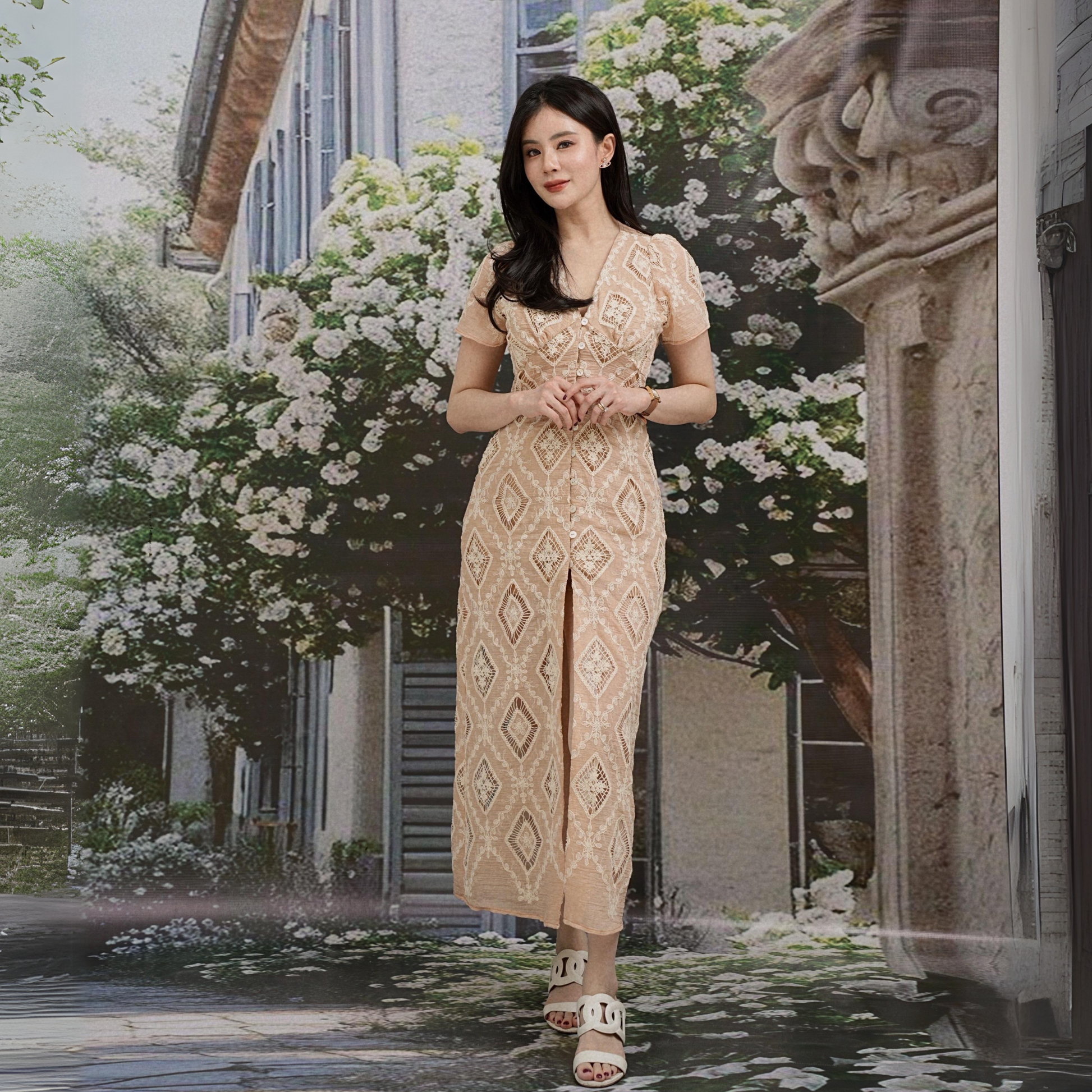 A dreamy summer dress that strikes the perfect balance between elegant and chic. The sheer effect is right on-trend, paired with stunning 3D lace detailing. The adjustable waist lets you tailor the fit to your body for a flawless silhouette. Bonus: It has pockets!