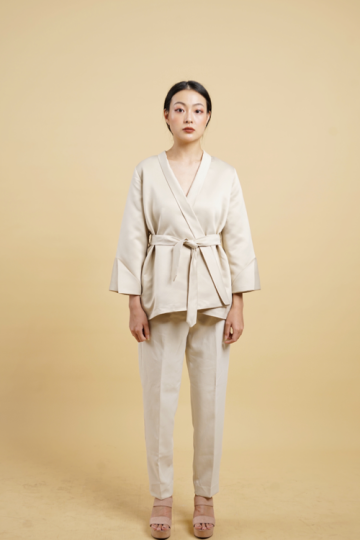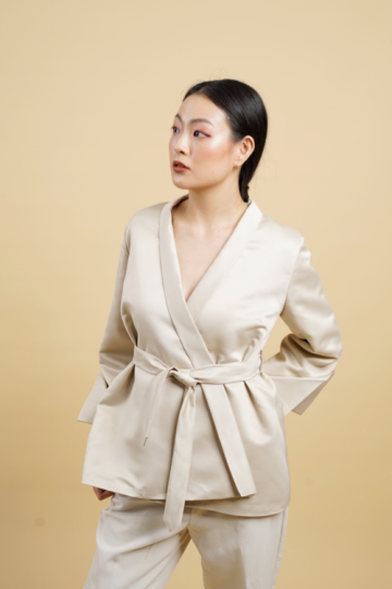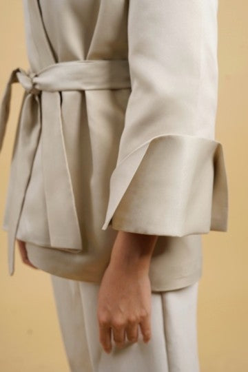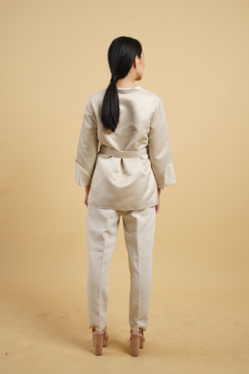 it's designed for urban smart woman who wants to look effortless polished and fierce at the same time. Fabricated in premium delicate duchess, super comfy to wear on top of any inner or you can wear it as it is. it has sleek kimono cutting, self tie belt and unique origami folded sleeves. A gorgeous versatile piece that you definetely wanna keep!