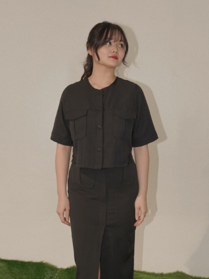 Lyoja top is definitely one of our masterpieces this season! Look at the details. Simply gorgeous and uplifting. Pockets on the sides and the workmanship is something we are definitely proud of. The cutting is made for you, and the material is very premium. Comfy, anti-wrinkle and hugs you perfectly. Comes in 3 colors; black, white & olive. Can be paired with our Marve skirt.