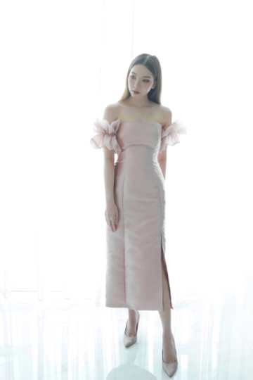 Featuring gorgeous off shoulder ruffles and sleek cutting bodycon dress that is just simply stunning. it has flattering high slit front to complete the look.
