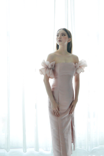 fabricated in most beautiful blush shade and it's fully lined on the inside, definitely a must have- stunning piece!