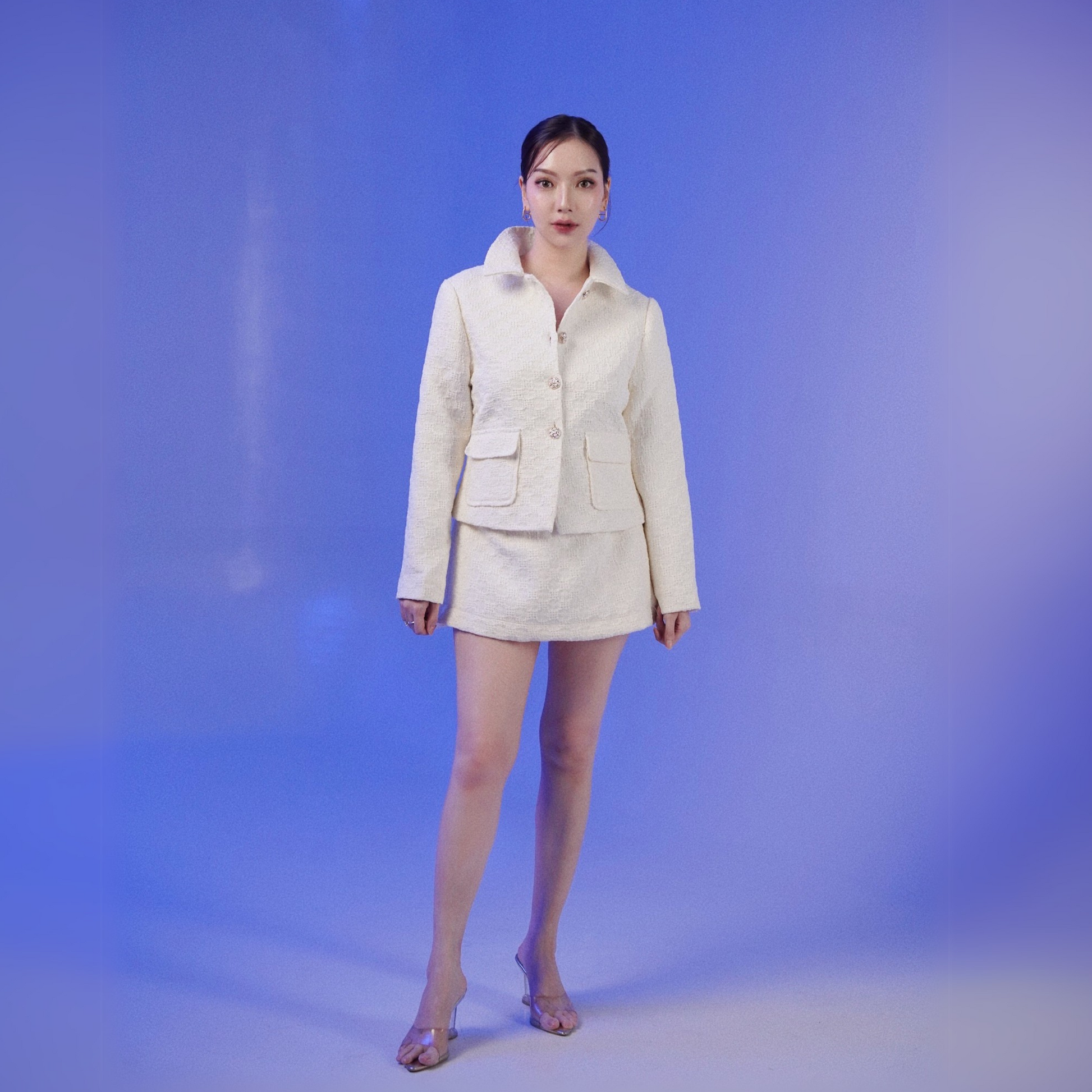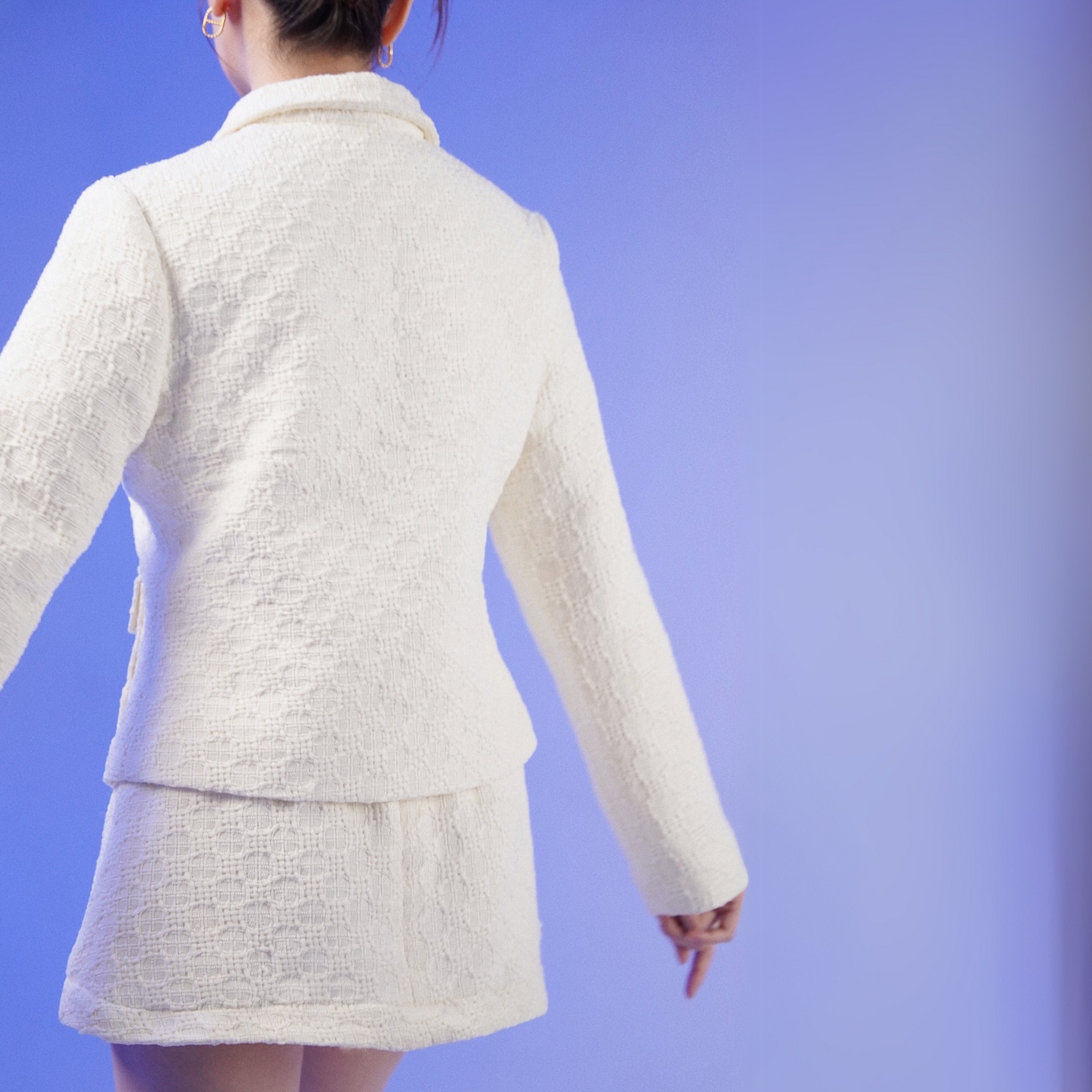 A power combo of tweed blazer and matching skort that delivers effortless elegance. The fit is clean and flattering with just the right touch of luxury. The skort includes built-in shorts for ease, and the blazer works beautifully as a layering piece. The detailed texture and matching buttons are chef’s kiss — even more stunning up close.
