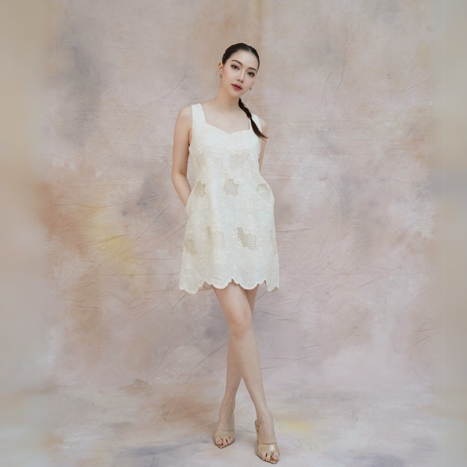 “Crafted from the finest premium cotton, this dress features an incredibly soft and beautiful fabric that feels luxurious to wear. The impeccable tailoring ensures a flawless fit, while the unique textured details add a touch of sophistication. Designed for versatility, it can be styled two ways and comes with a comfortable lining for added elegance. Truly a standout piece!”