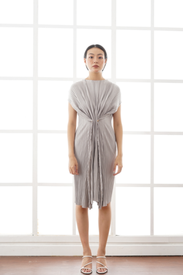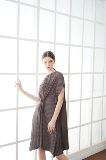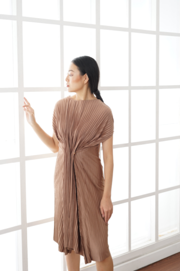 Featuring front pleated details with oval neck line, this dress is very comfortable to be worn as daily wear. it has zipper closure at the back.