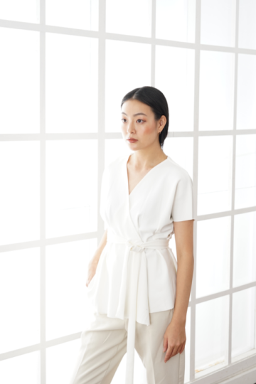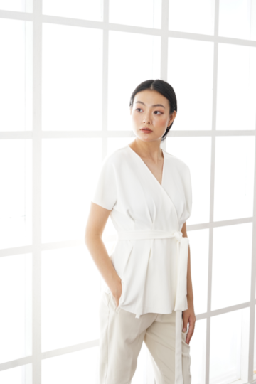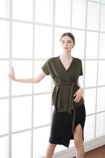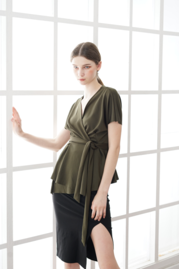 a flattering kimono top, that features inverted dart on the waist to enhance the body curve. it comes with adjustable self tie belt.