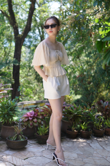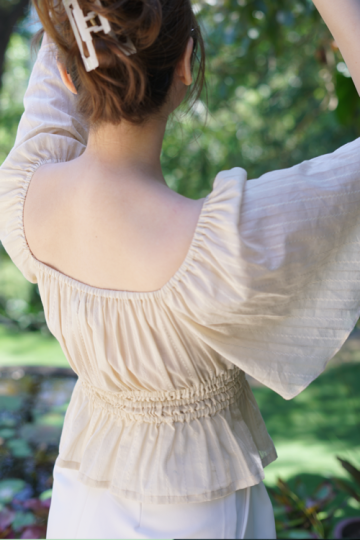 This gorgeous top, features flattering flare sleeves and square neckline, it also has 3 elastic at the waist to ensure the the perfect slim fit. The fabric has beautiful texture and it's so airy to wear on summer days. Must have!
