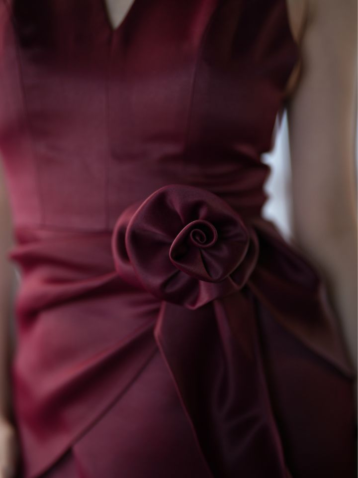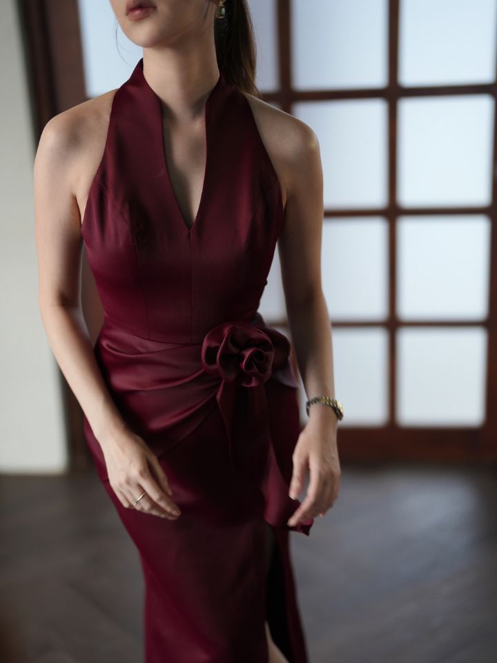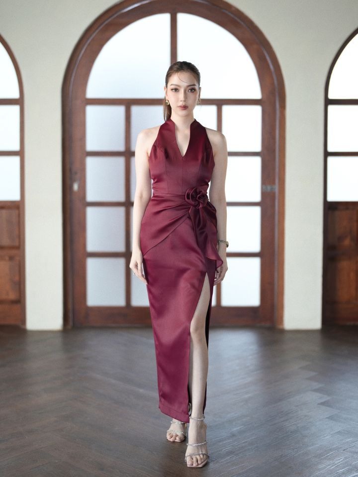 Paulina Dress comes in the most elegant color this year; Burgundy. The cutting is everything 10/10. Super sleek, rose details and comes with a slit. This dress needs no further description!