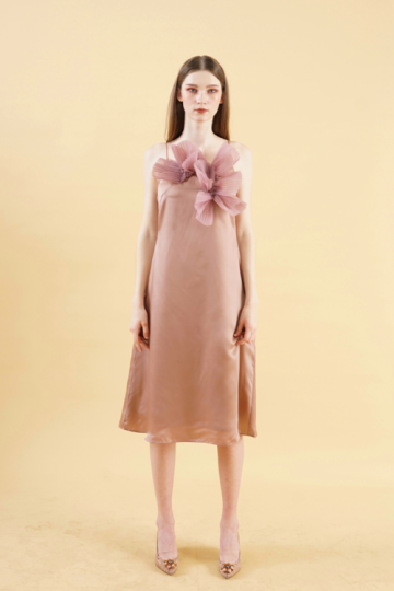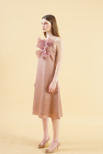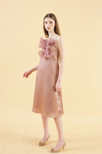 Our most wanted slip dress of the season. Fabricated in a luxe silky material, and it comes with 3D pleated petals attached on the V neckline, definitely a head turner! This one will have them asking- where did you get that dress?