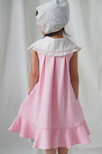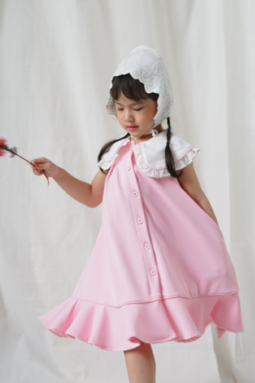 fabricated in premium neoprene and cotton, this gorgeous Percy dress has the beautiful flowy cuttings for your lil one to dancing with. it has buttons as the front opening. and it has a very pretty wide collar details.