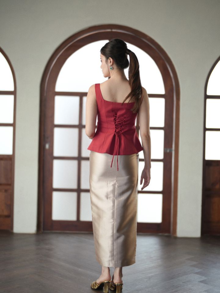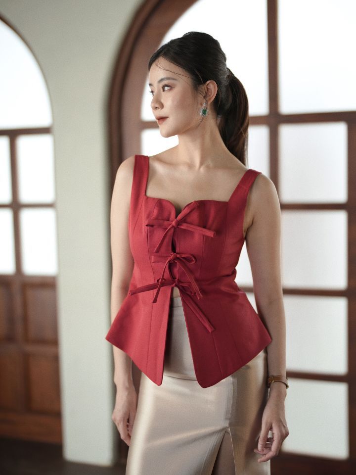 A must have bustier top with a twist in your closet! Look at the details; flattering cutting, square neckline and comes with a belt that can be adjusted accordingly. Super flattering and body hugging!