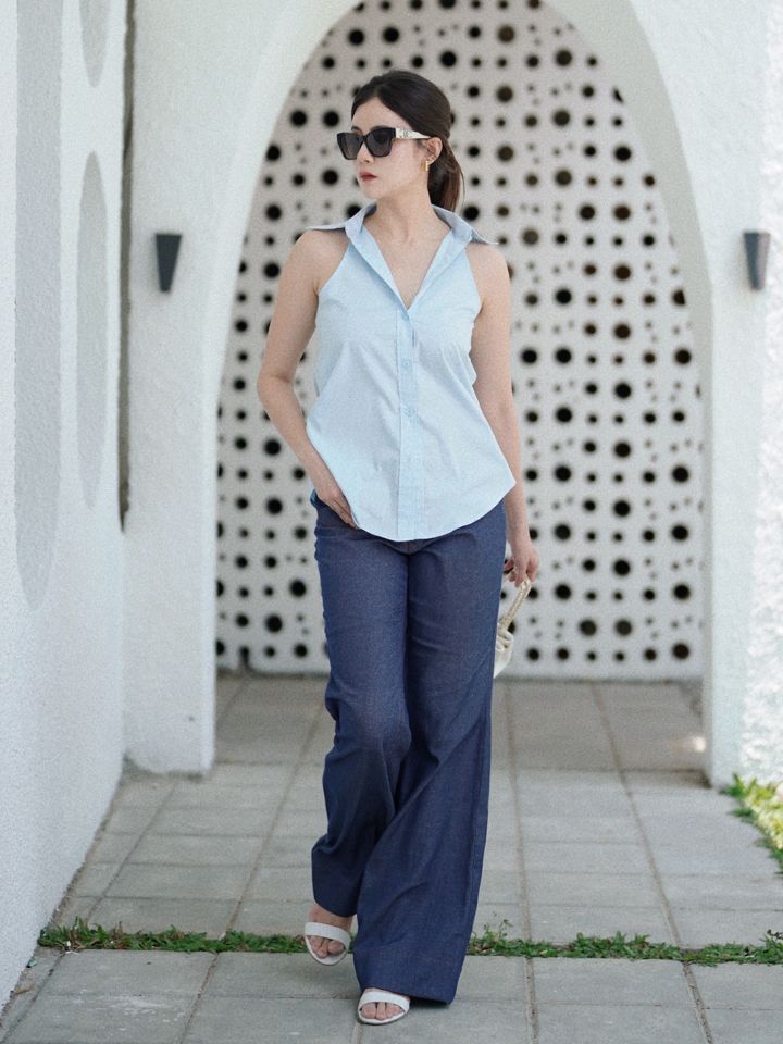 Definitely a must have basic top. Made to perfection here in our studio. Perfect for you that love chic minimalist look! Easy to mix and match, comes in white and baby blue. Can be worn as a top or pair it with a blazer or outer and bamm! You are pinterest ready.