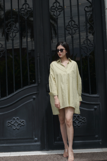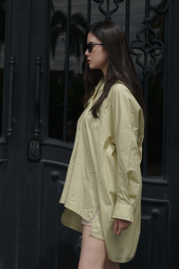 this oversized button shirt is just so stunning to wear, as it has structured cuttings that gives you a very cool vibe when you wear it. it looks like a shirt from the the front, and it also look like a mini dress from the back, such an unique basic shirt that you gotta have on your wardrobe.