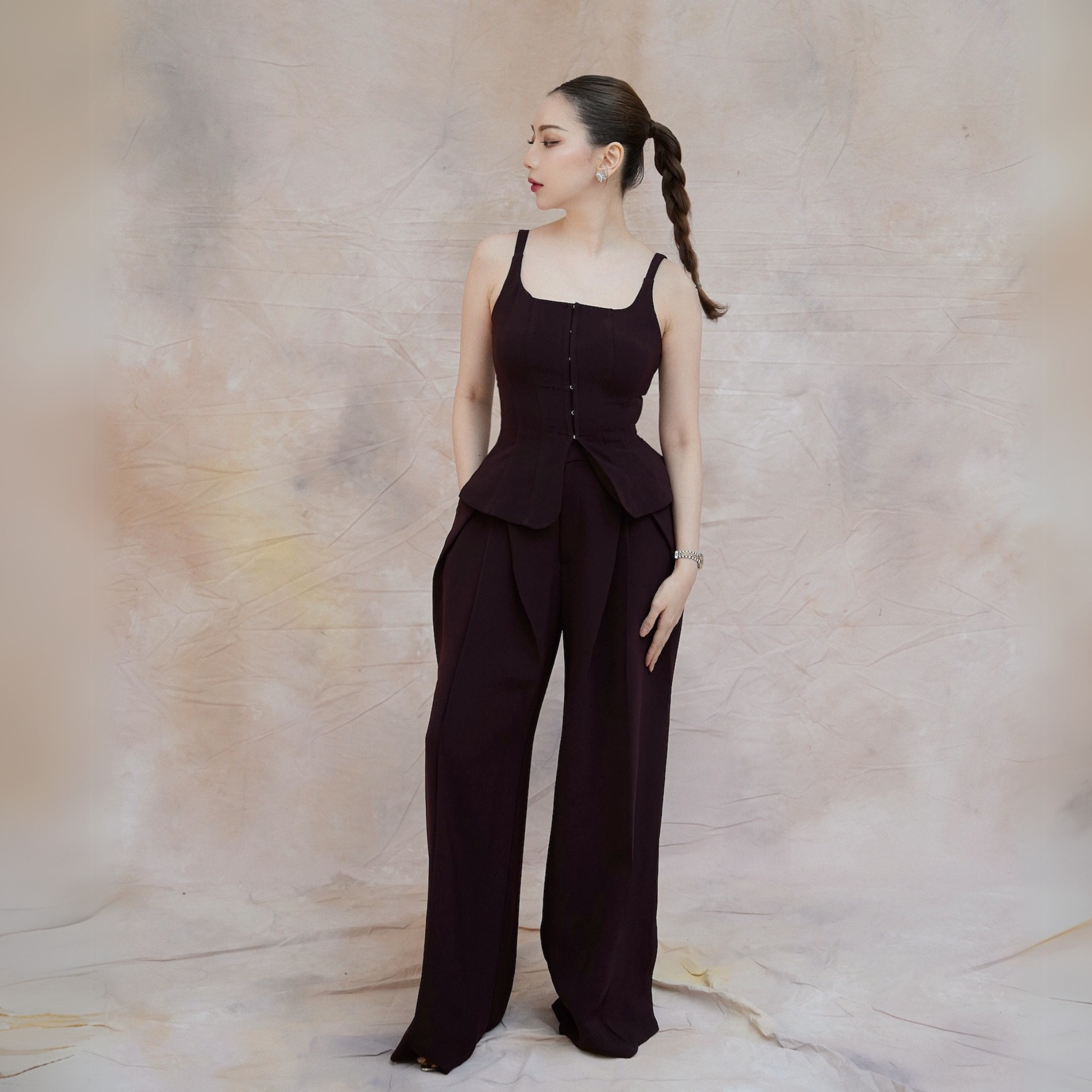 These pants are designed to flatter, with premium materials and a cutting that enhances your silhouette beautifully. Available in a soft brown shade for an aesthetic, detailed finish and in burgundy—the most coveted color of the season! Perfect for making a statement with every step.