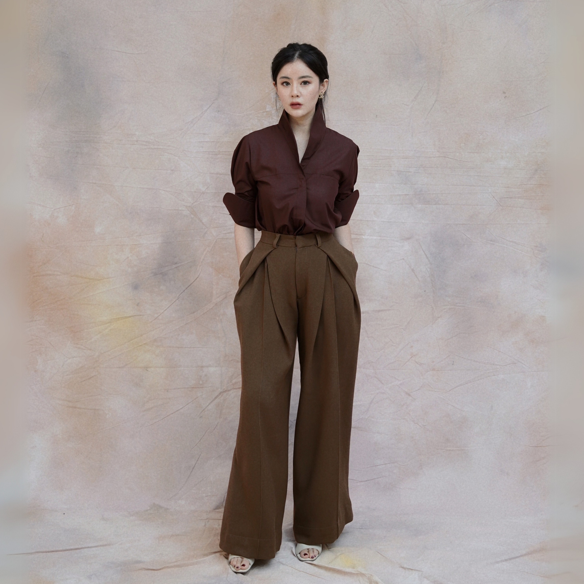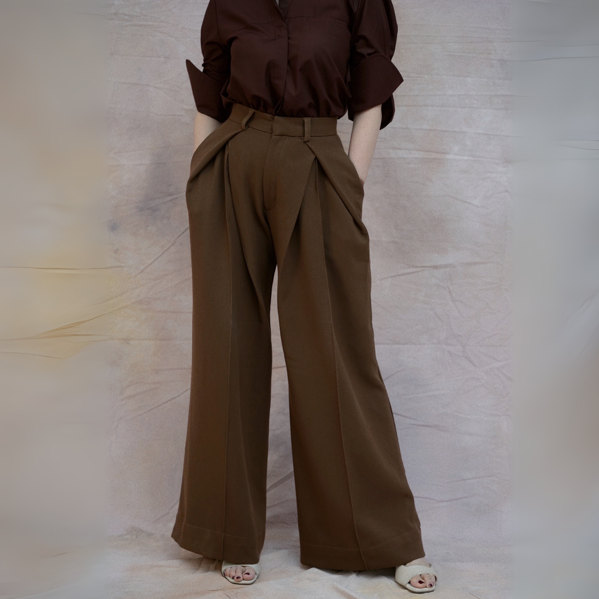 These pants are designed to flatter, with premium materials and a cutting that enhances your silhouette beautifully. Available in a soft brown shade for an aesthetic, detailed finish and in burgundy—the most coveted color of the season! Perfect for making a statement with every step.