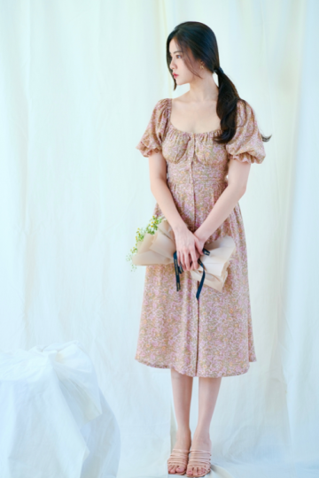 Overall this dress is just too GORGEOUS! fabricated with chic floral print linen silk, this dress is very light, airy and super comfortable to wear. It has premium wrap buttons as the front opening, and the puffy sleeves is just something that your closet gotta have! Elastic string at the back to ensure a more comfort fit.