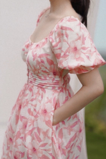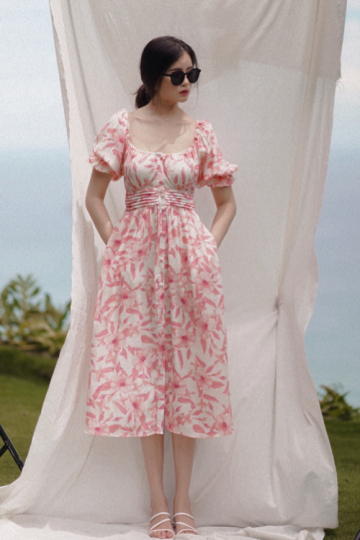 Overall this dress is just too GORGEOUS! fabricated with chic floral print linen silk, this dress is very light, airy and super comfortable to wear. It has premium wrap buttons as the front opening, and the puffy sleeves is just something that your closet gotta have! Elastic string at the back to ensure a more comfort fit.