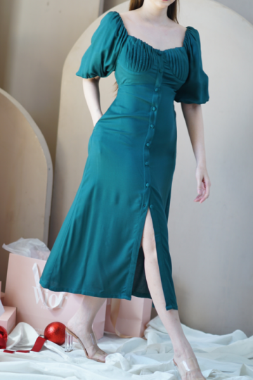 fabricated in premium delicate tencel, this Scarlett dress is very light, airy and super comfortable to wear. It has premium wrap buttons as the front opening, and the puffy sleeves is just something that your closet gotta have! Elastic string at the back to ensure a more comfort fit.