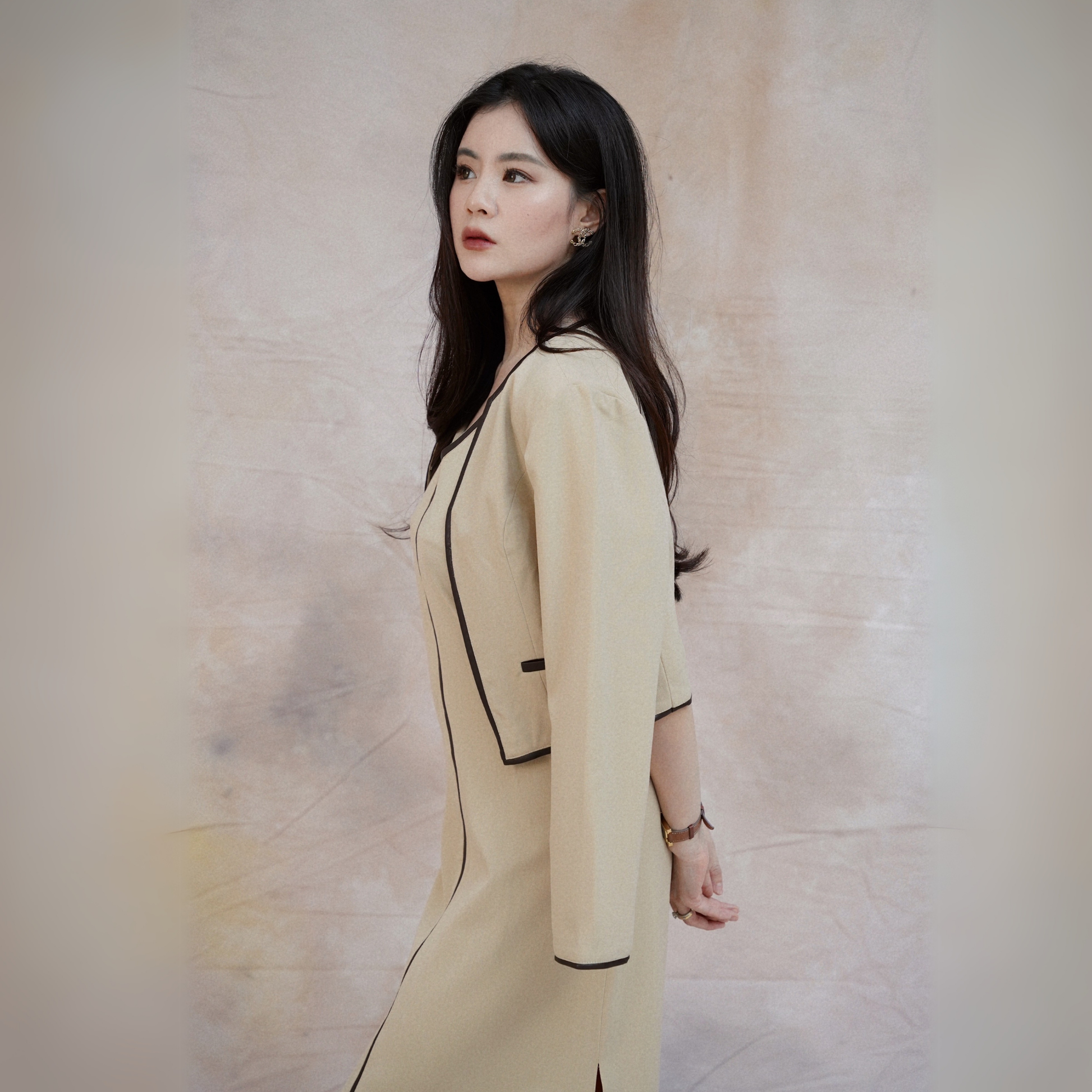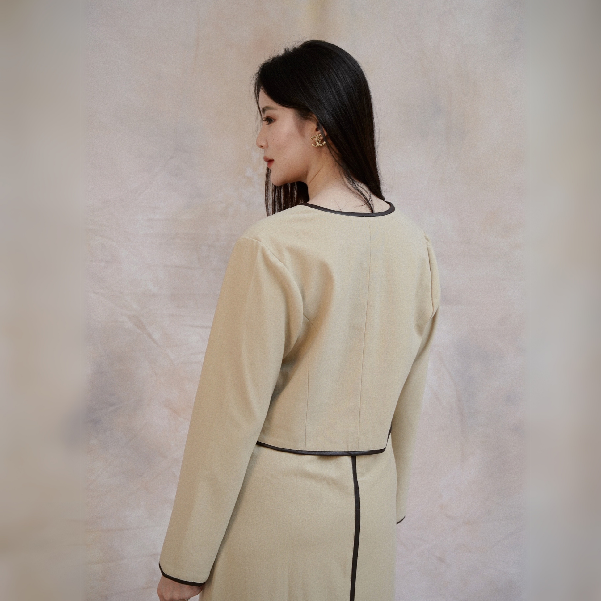 “This versatile outerwear piece is a wardrobe essential! Wear it as an outer layer or a chic top, styled effortlessly in multiple ways. Designed with a sleek, minimalist touch, it features hidden buttons and luxurious leather accents. Crafted from premium fabric in timeless colors with a classic cut, it’s perfect for any occasion—whether you’re on holiday, at the office, or out and about. Elevate your look with this sophisticated and practical must-have!”