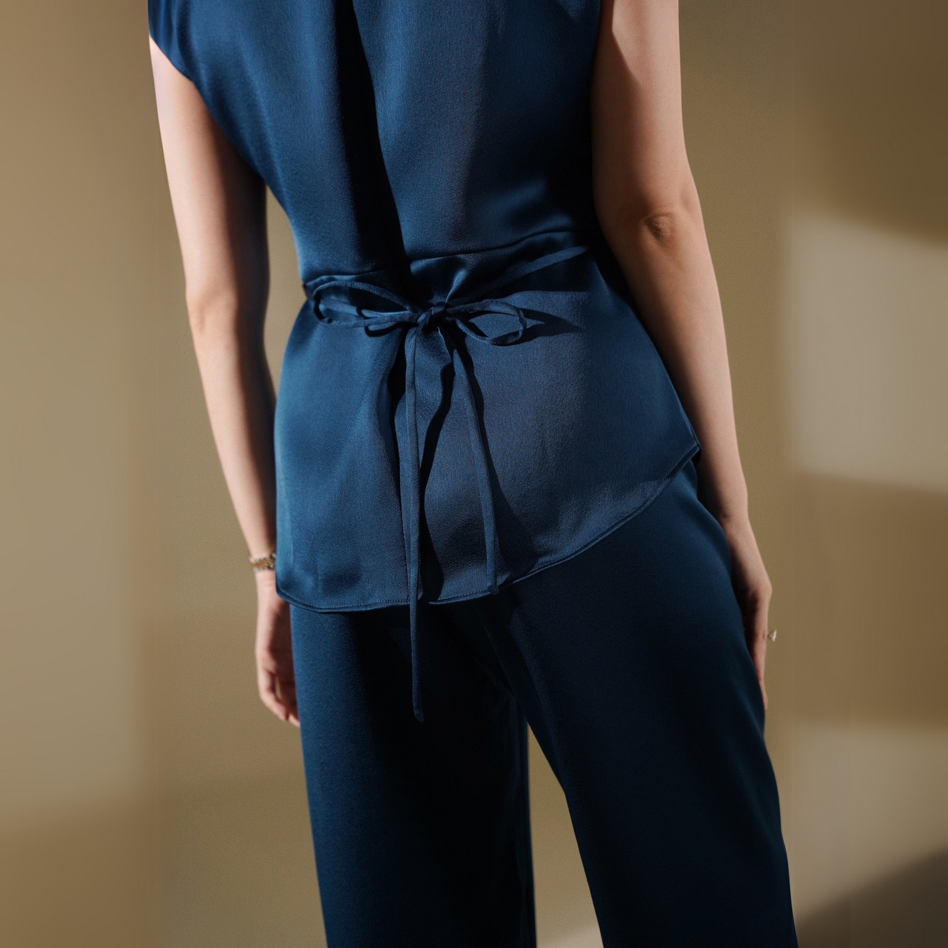 Effortless elegance meets modern sophistication. The Tobias Top features: A beautifully draped cowl neckline for a refined yet relaxed look. Layered front detail that creates a sleek, polished silhouette. An adjustable waist tie for a perfectly cinched fit. This top is for those who love refined style with minimal effort. No need for over-styling—it’s already aesthetic, polished, and figure-enhancing right out of the box.