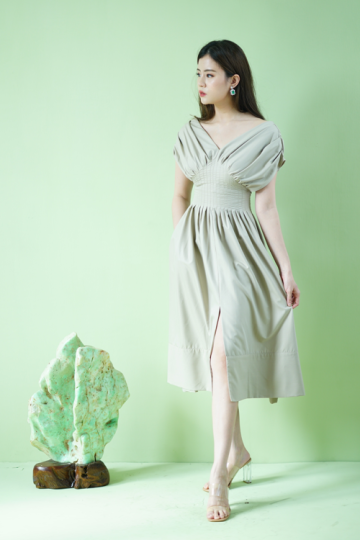 This gorgeous midi length dress features such a flattering panel details at the waist to enhance your body figure at it's best. It has smocks rubber at the back and invisible zip as the back closure. It has side pockets and middle front slit. This is such stunning dress that you would need to have in your wardrobe.