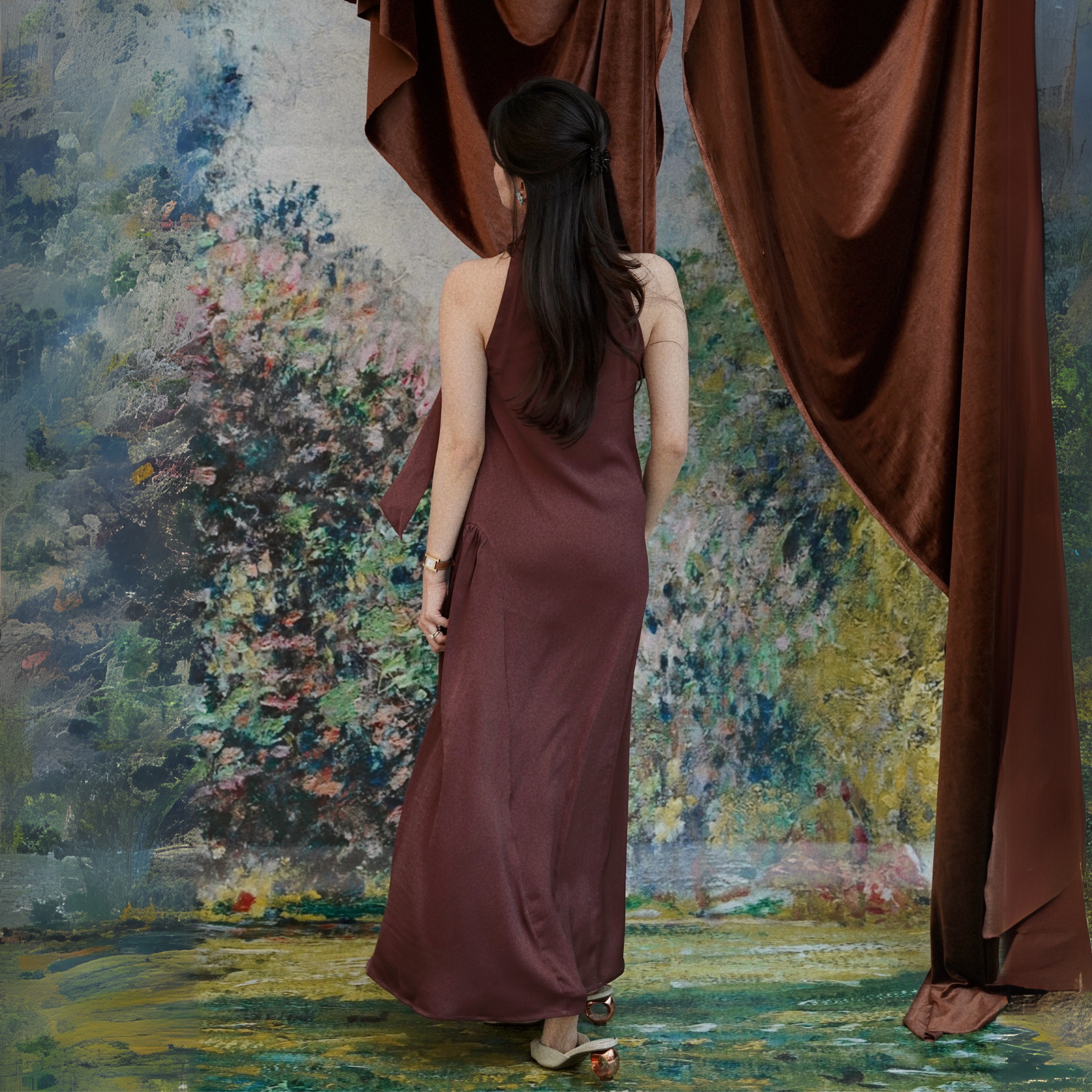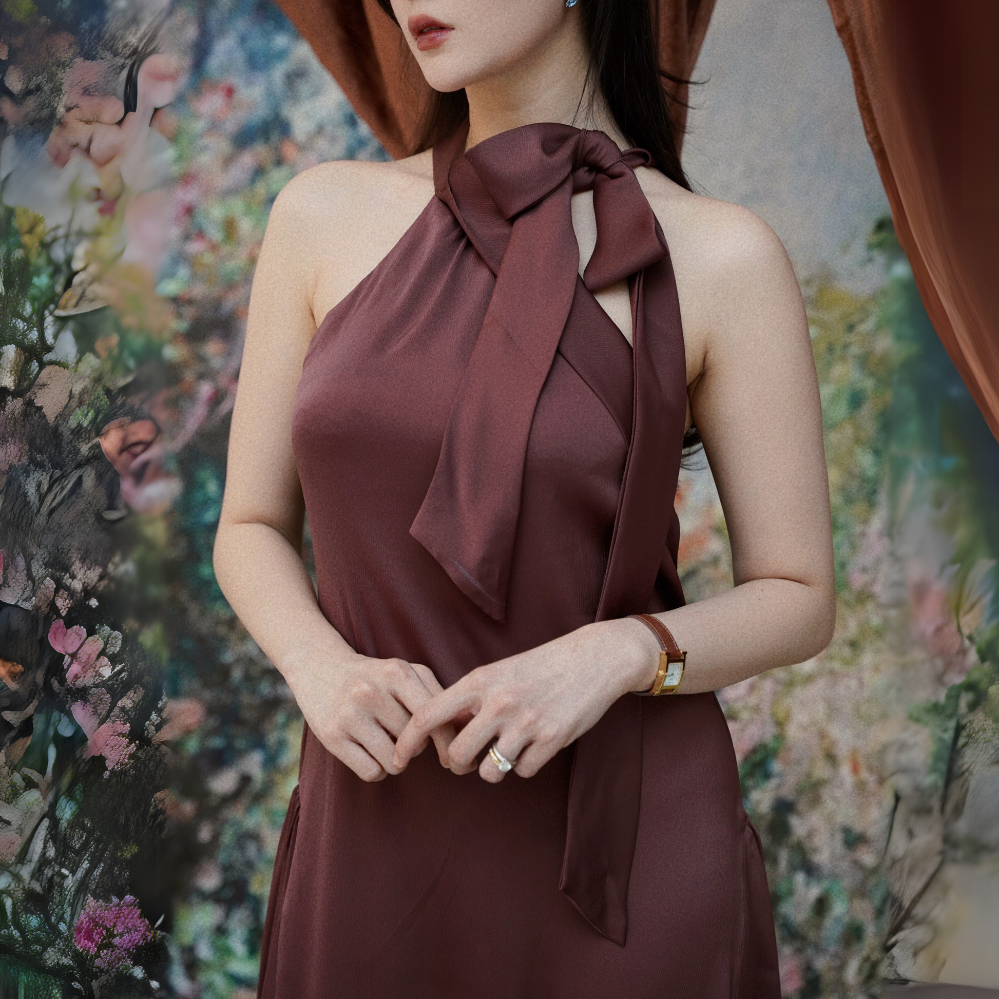 Wearing the Winslet dress gives off a high-status aura. The cut looks simple, but the details are refined — you can style it in 3 to 4 different ways, making it super worth the investment. The scarf can be styled into a bow, adding an extra touch of luxury. This dress is definitely bump-friendly, and the fabric is amazing — super soft and breathable, so it’s perfect for outdoor events like garden parties. We’ve designed it in subtle, rare colors like Burgundy and Olive, which look stunning in real life — the vibe is luxurious.